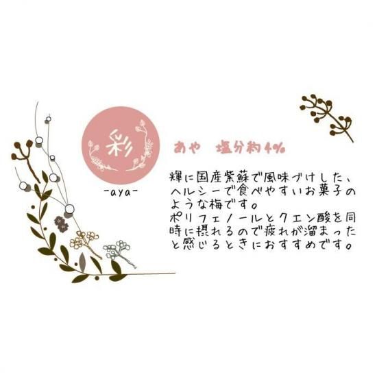 ”彩”は塩分4%、水飴仕立てのやわらかな甘さに赤紫蘇の風味がふんわり広がり、ほんのり